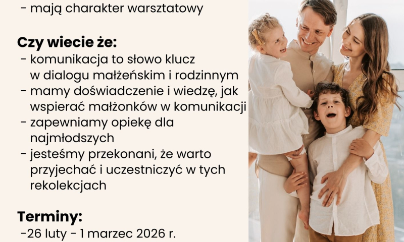 Uwaga terminy rekolekcji z komunikacja w rodzinie, wychowywanie dzieci